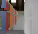 2004Eenentwintig ellipsvormen van plexiglas met een onderbreking, die een witte streep op de muur creƫert. Het geheel hangt in de ruimte en draait met de luchtstromingen mee.