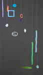 2001In opdracht gemaakt: mobile van drie grote plexiglas vormen, bewerkt met verschillende technieken.